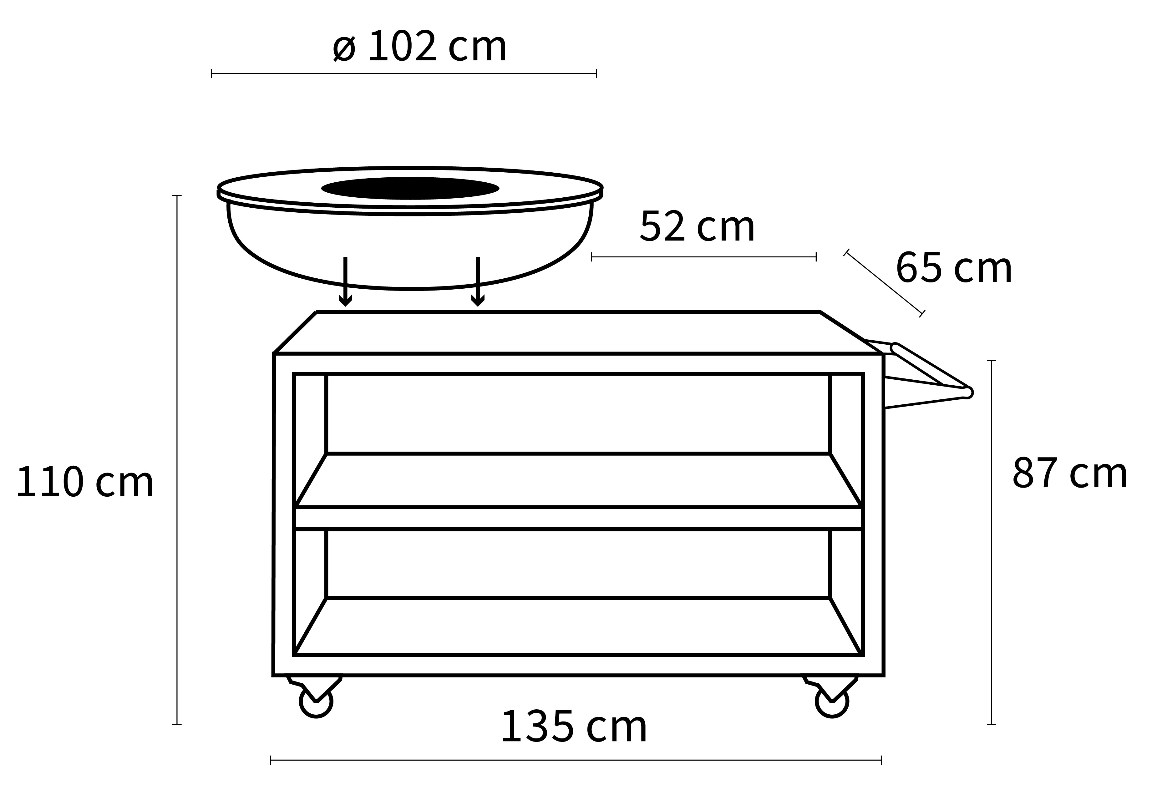 La BonFeu BonBiza Island XL no solo ofrece muchas posibilidades para cocinar, sino también un práctico espacio de almacenamiento. Bajo la superficie de trabajo, encontrarás grandes compartimentos para guardar leña, sartenes, accesorios de cocina y otros elementos esenciales. Esta capacidad de almacenamiento garantiza que todo esté a la mano, eliminando la necesidad de mesas o armarios adicionales.