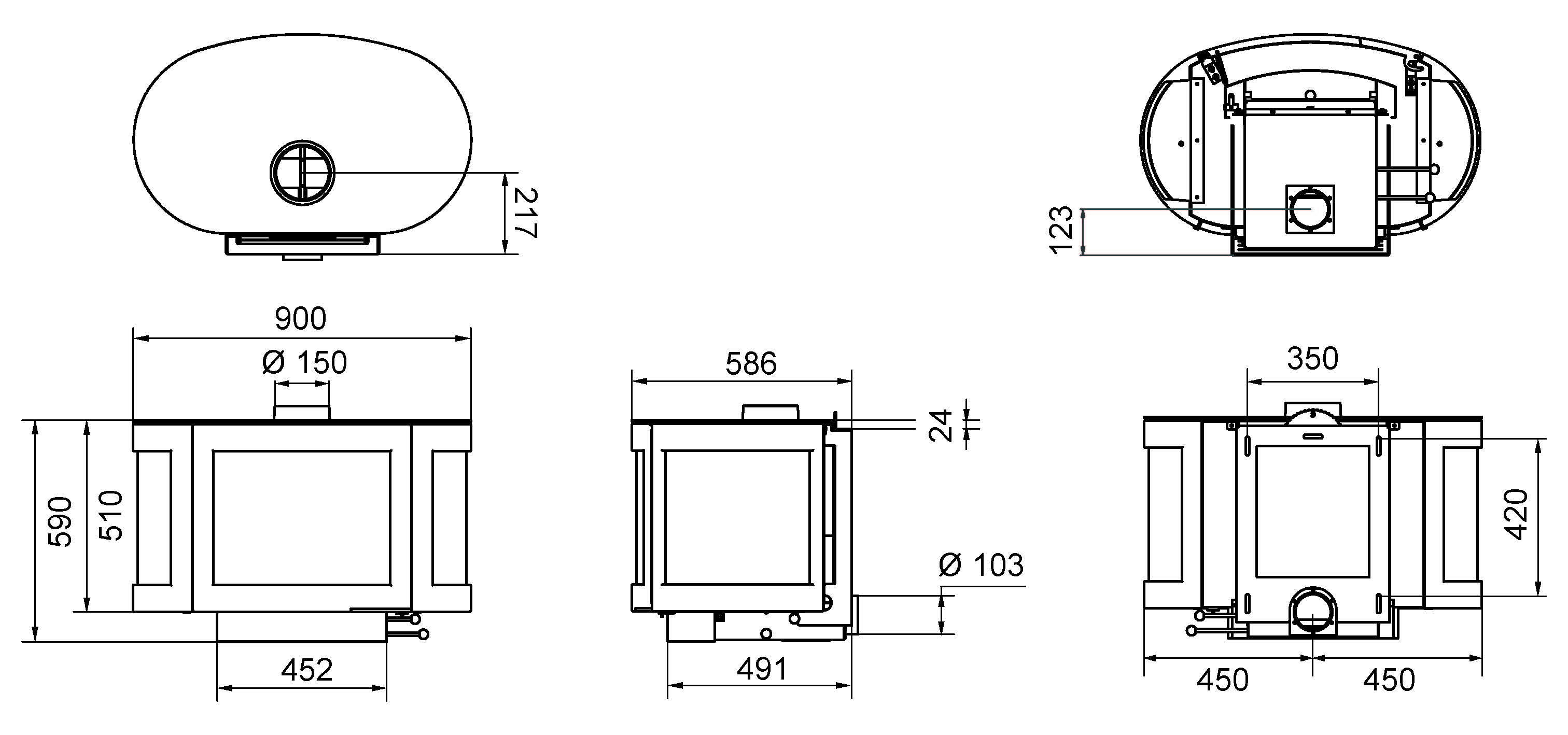 Una estufa de leña colgante, de hierro fundido y forma ovalada, con una puerta amplia. No se ven así muy a menudo, sobre todo con vidrio en tres lados. Por lo tanto, la Black Pearl es ideal para calentar espacios grandes. Y su gruesa placa de acero le permitirá mantener la llama encendida durante décadas.