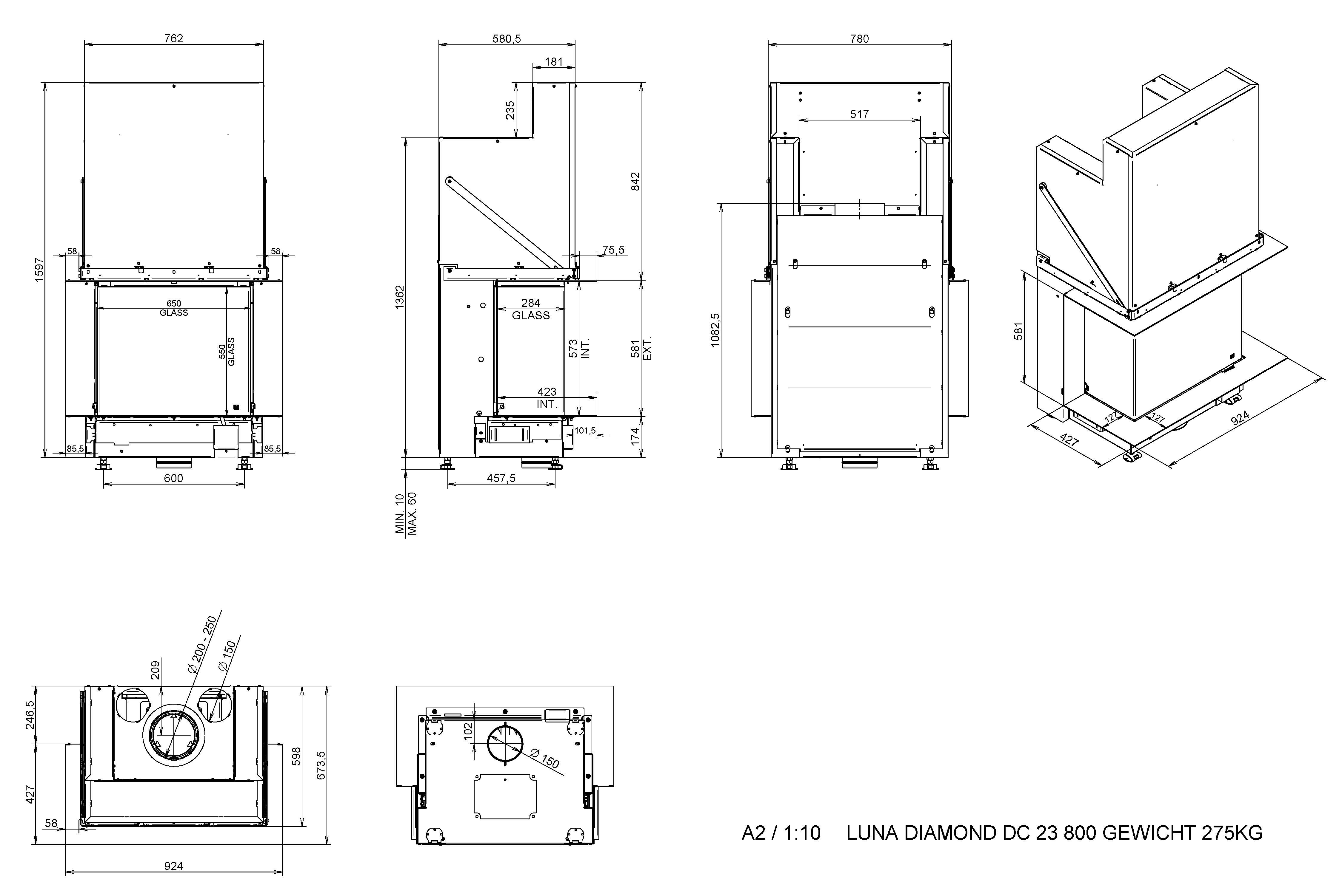 Chimenea de leña Luna Diamond 800 DC