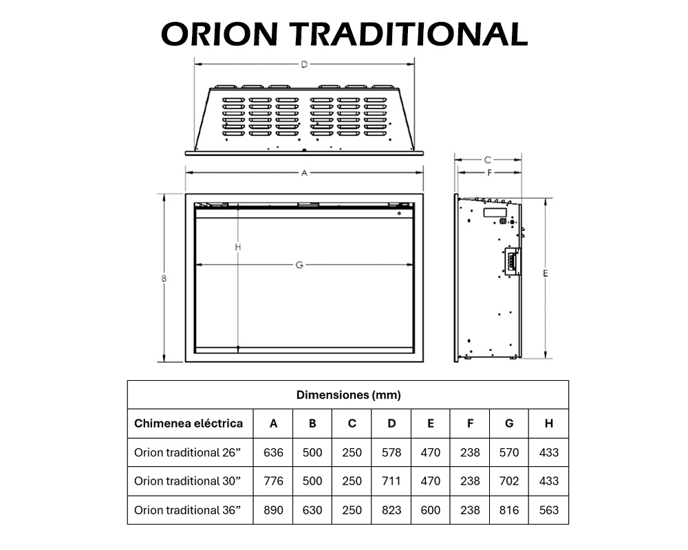 La Orion Traditional combina la estética atemporal de una chimenea tradicional con la innovación y comodidad de la tecnología eléctrica moderna. Diseñada para instalación empotrada o como cassette insertable, es la solución perfecta para renovar hogares existentes o crear ambientes cálidos y sofisticados en proyectos actuales.