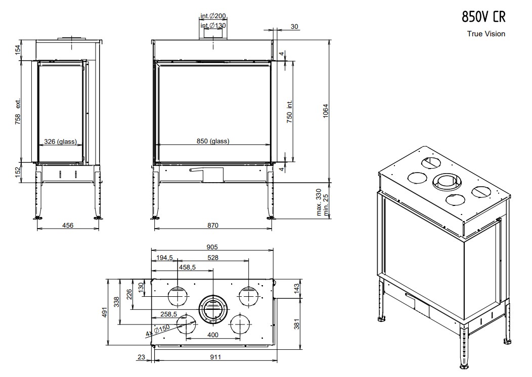 TRUE VISION 850VCL LPG CRISTAL IZQUIERDA INT. METALICO LEÑOS H1 CRISTAL VITROCER. SIN LED