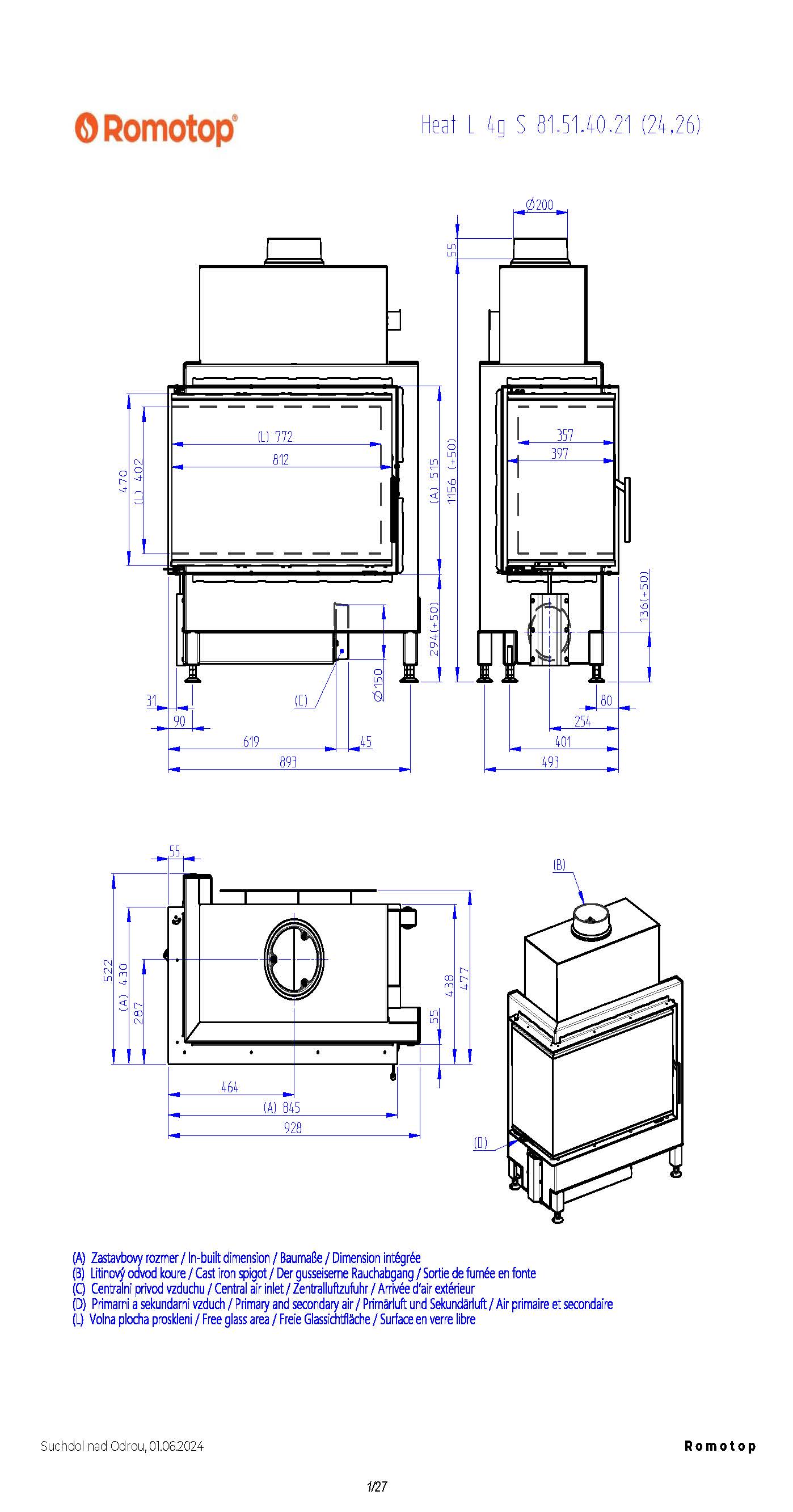 Instalación de chimenea de leña rinconera y abertura abatible modelo E2 81/40 de la firma checa Romotop. Montaje efectuado por nuestro distribuidor oficial Natuclima de Mieres, Asturias.