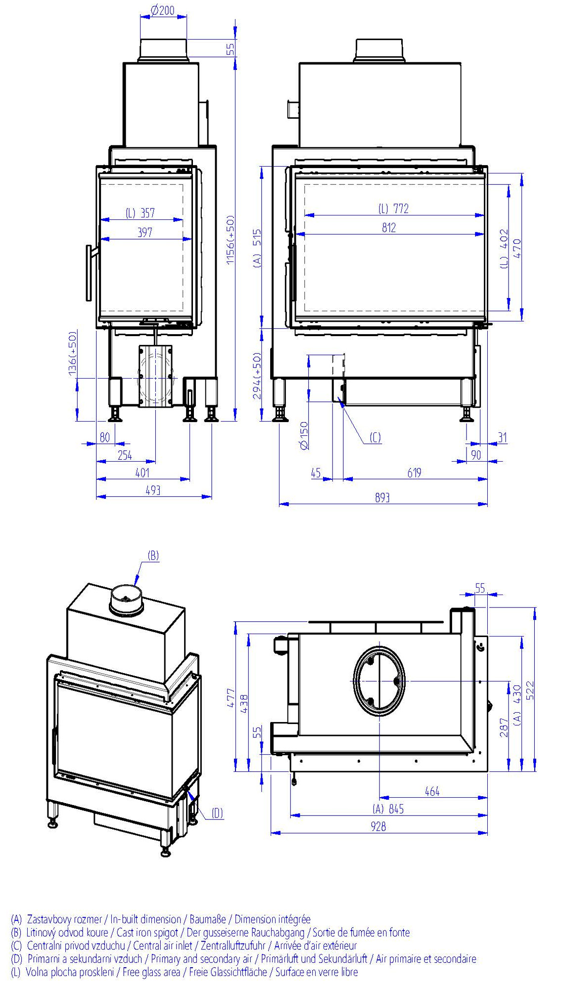 Chimenea de leña E2 68/31 rinconera abierta a la derecha