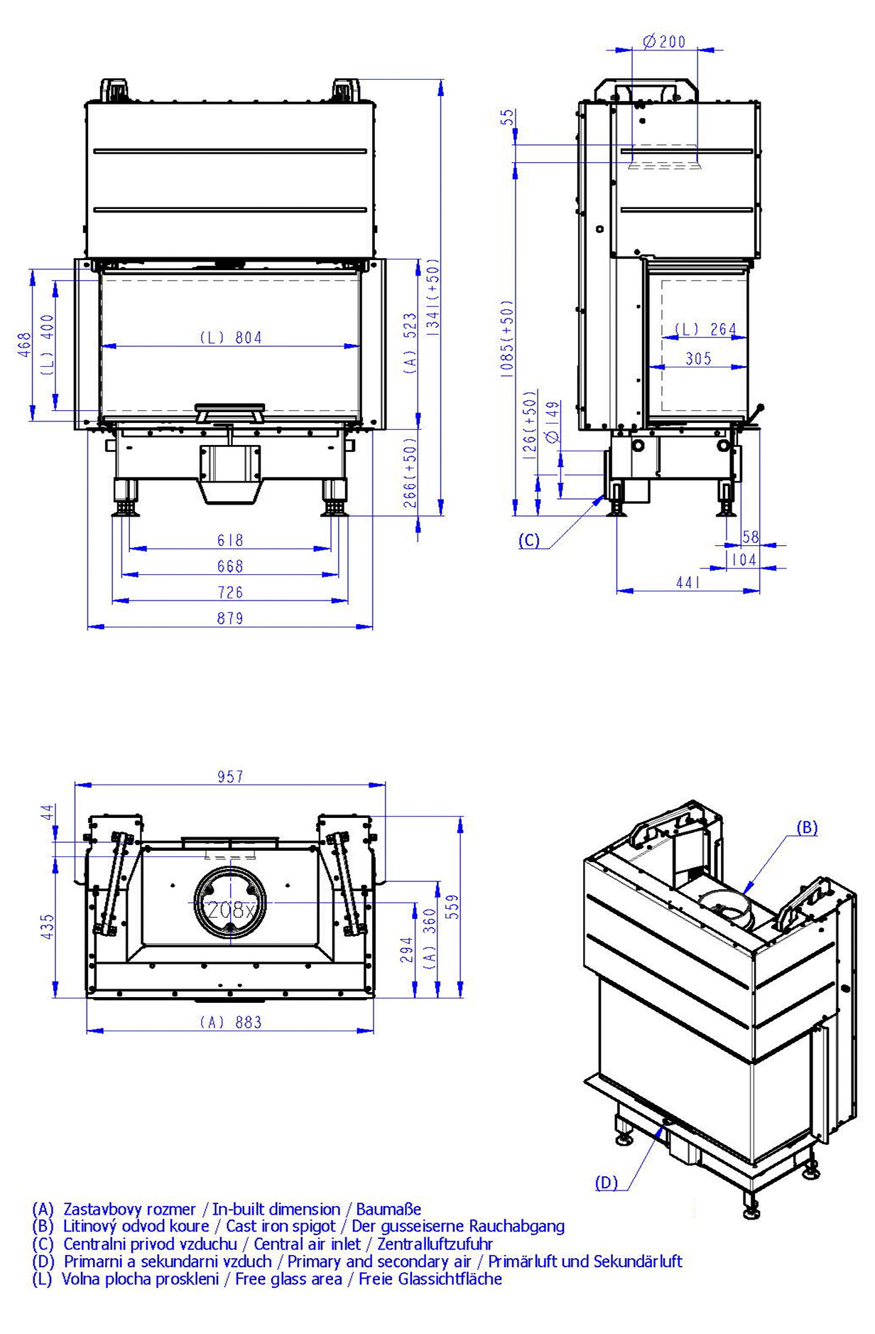 Chimenea de leña de triple cara 3CF3G 80/31 3CF3G