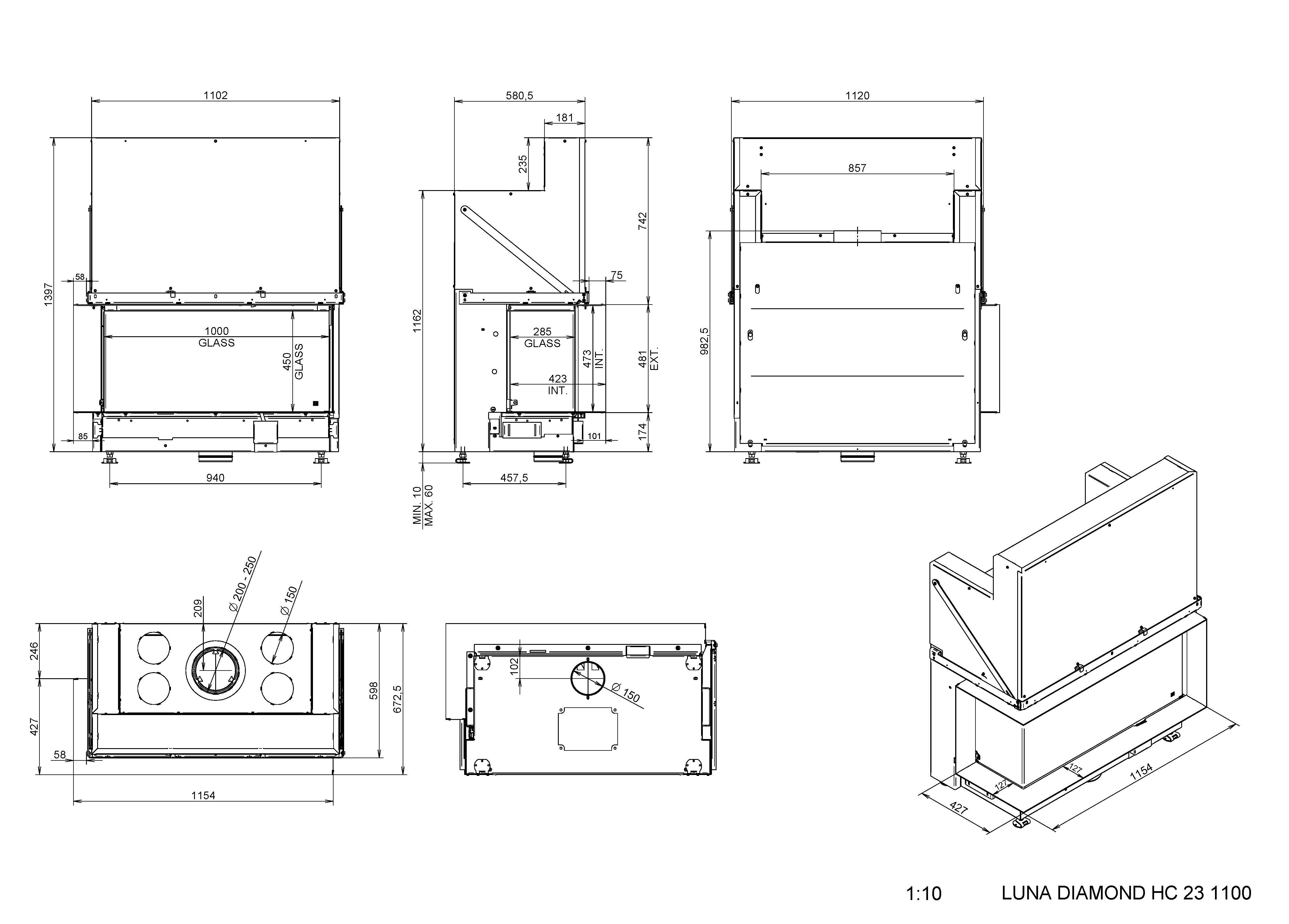 Chimenea de leña rinconera Luna Diamond 1100CR