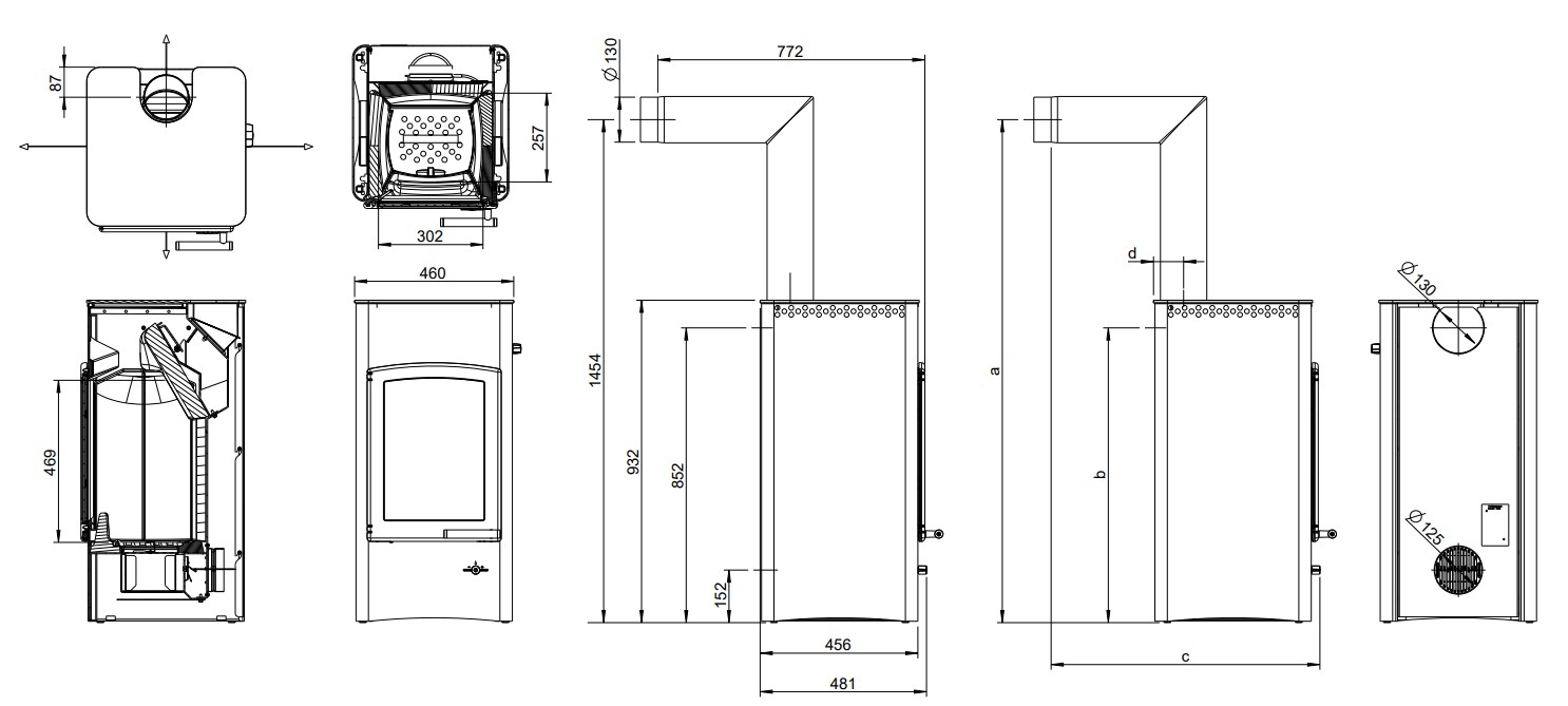 Estufas con control de aire automático, con sensor de temperatura en la cámara de combustión.
