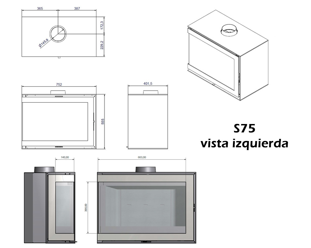 | Salida de humos | Superior |