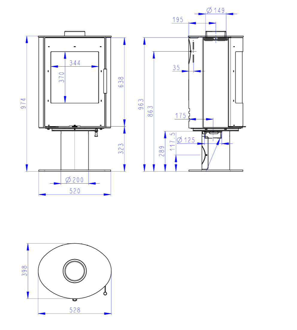 La cámara de combustión giratoria permite ver el fuego desde múltiples ángulos. Esta estufa es ideal para hogares de bajo consumo energético. Incluye un sistema EAI (entrada de aire externo). La versión estándar incluye una salida de humos superior. Gracias a la entrada de aire secundario, el cristal de la puerta se limpia con aire para evitar la acumulación de hollín. La cámara de combustión está revestida con cerámica de keramott. Las entradas de aire primario y secundario se regulan mediante un único elemento de control.