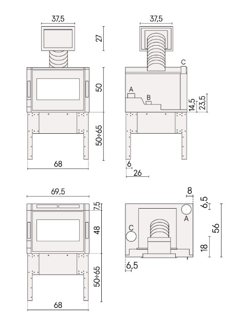 | Salida de humos | Superior |
