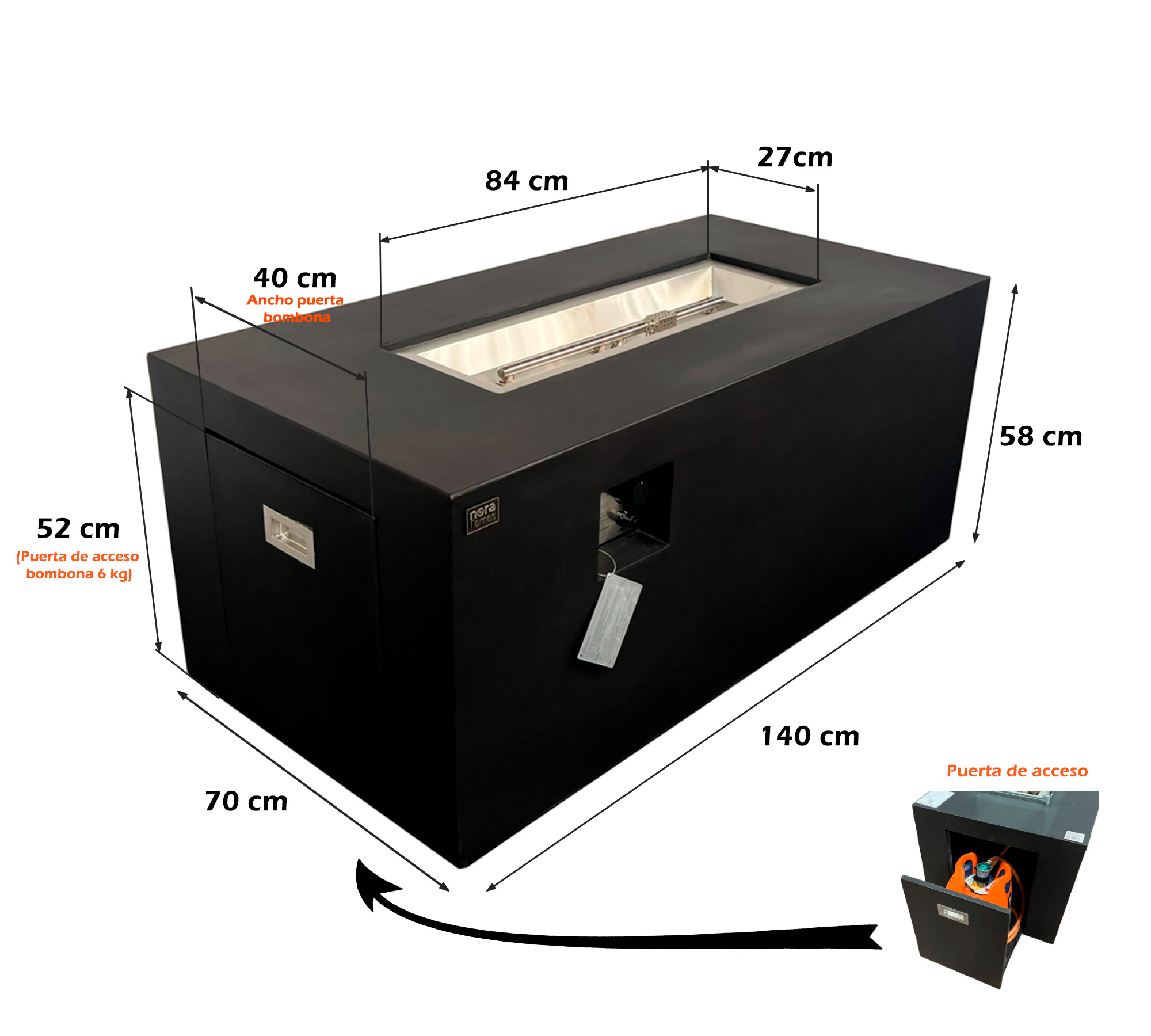 Este modelo dispone de una puerta para almacenar la bombona en su interior.