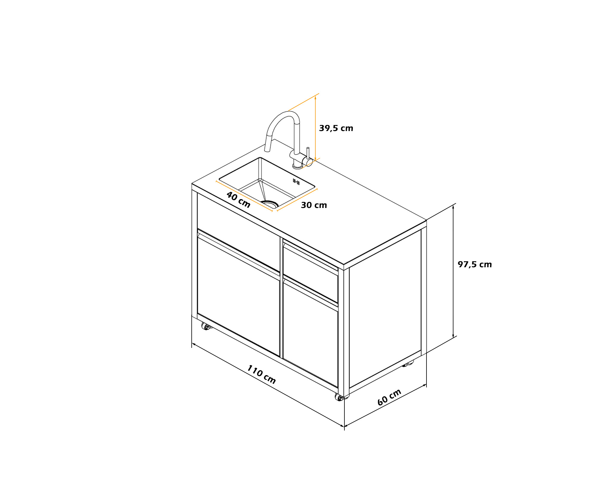 Módulo fregadero para cocina serie Bonnie, incorpora grifo para exterior con agua fría y caliente.