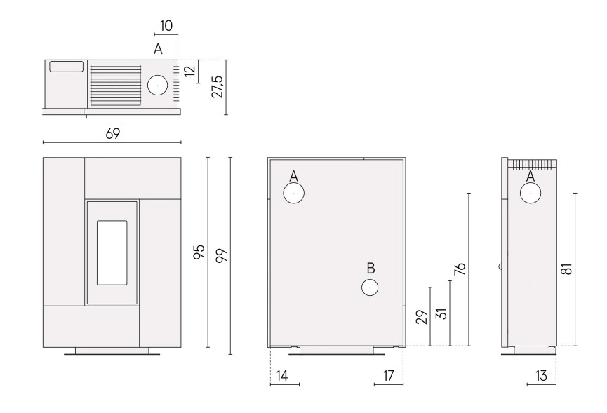 Instalación de estufa de pellet de 7kW modelo Grace de la firma Cadel.